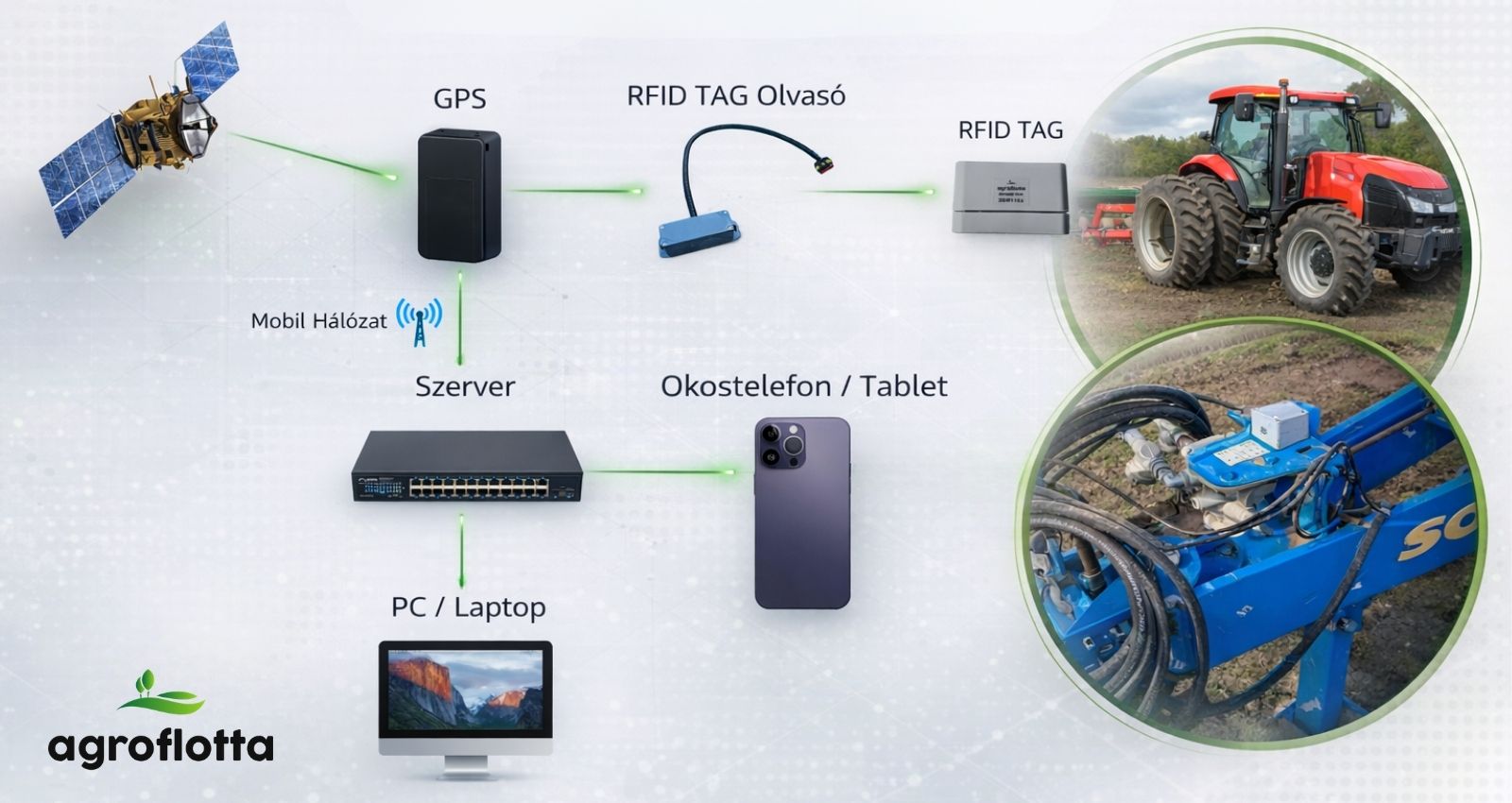 Az Agroflotta saját fejlesztésű RFID alapú vontatmány-azonosító rendszere erre ad megbízható, automatizált megoldást.